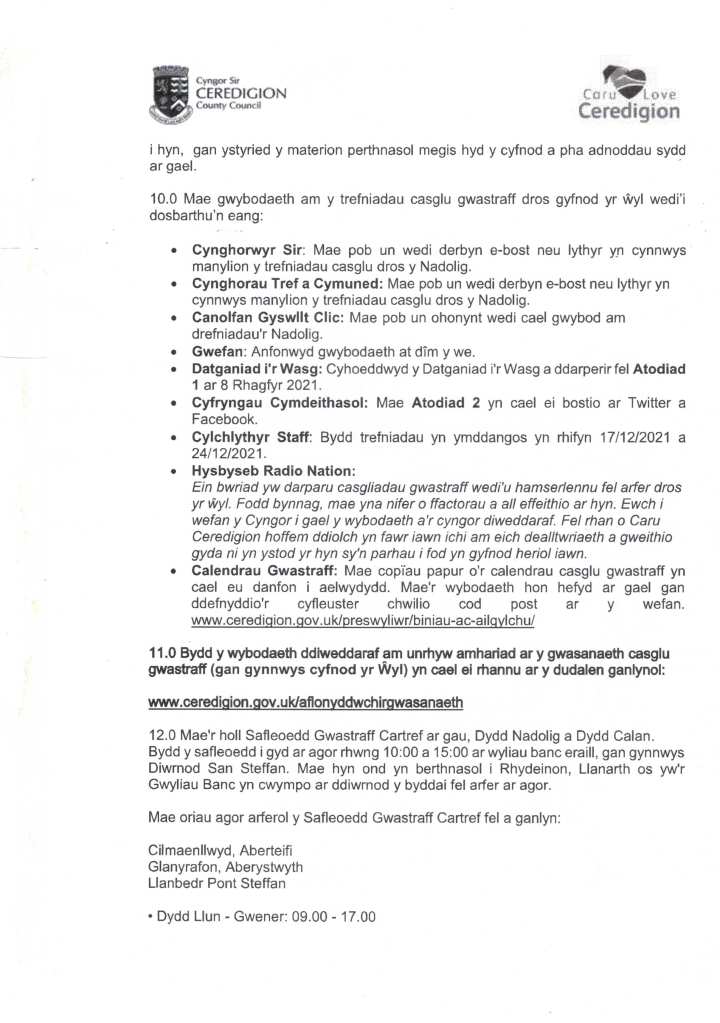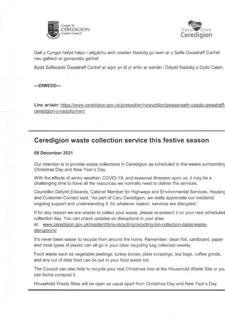 December 22, 2021 / cyngorcymunedystradfflur Share this: Click to share on X (Opens in new window) X Click to share on Facebook (Opens in new window) Facebook Like Loading... Related