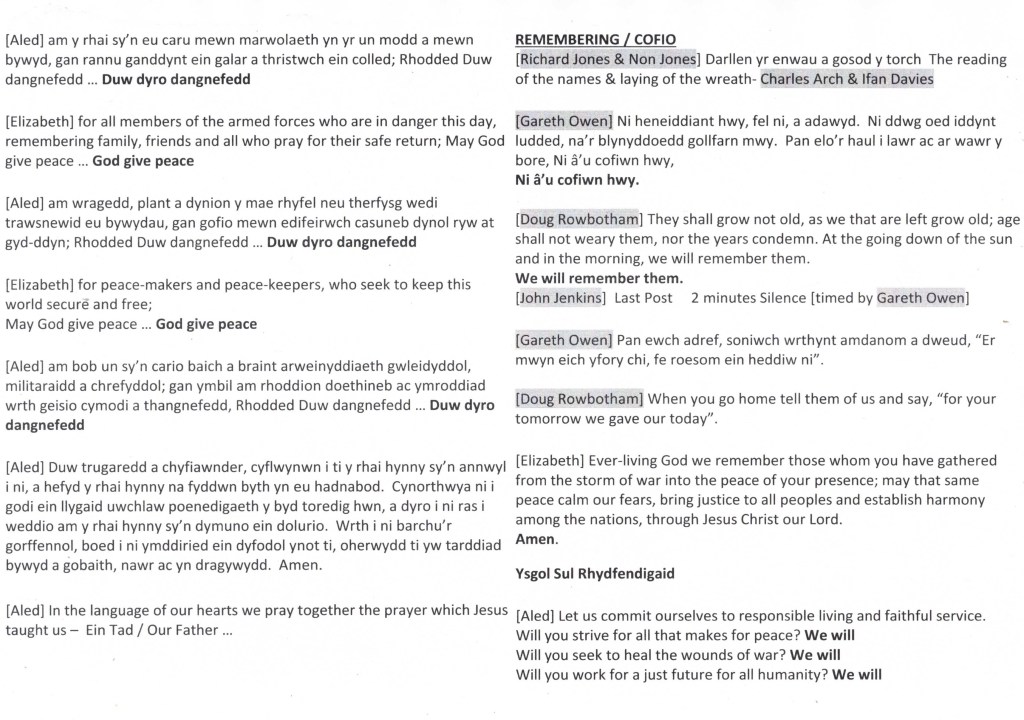 RHAGLEN SUL Y COFIO 2022: ORDER REMEMBRANCE SERVICE 2022 November 10, 2022 / clerkcommunitycouncil Share this: Click to share on X (Opens in new window) X Click to share on Facebook (Opens in new window) Facebook Like Loading... Related